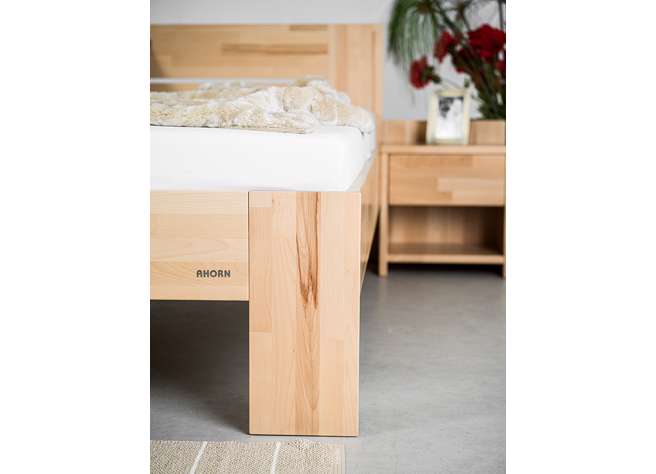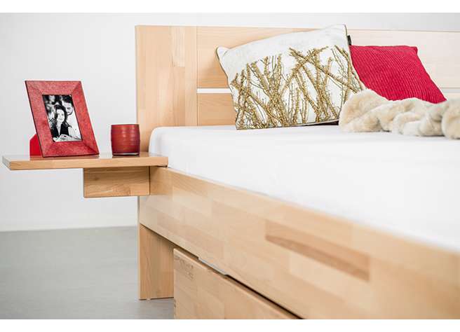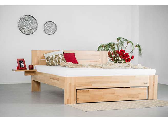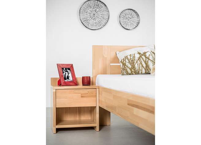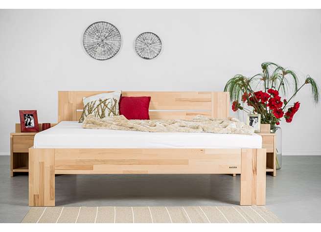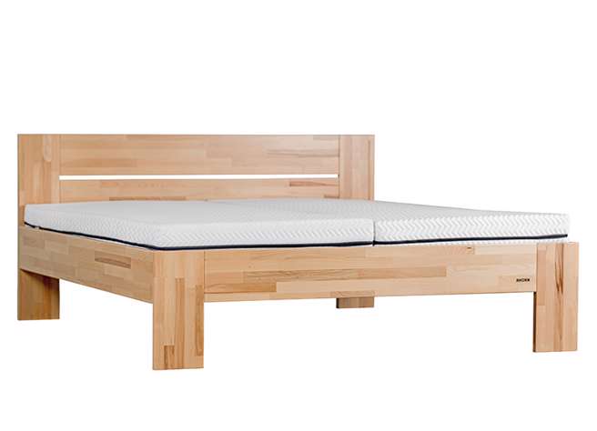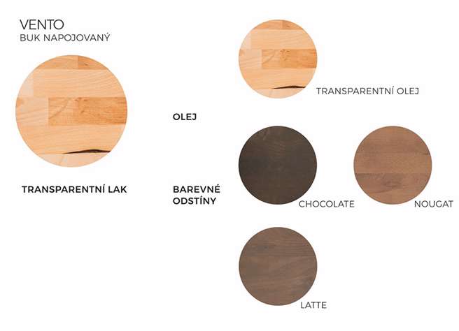 Postel Vento je vyrobena z kvalitního bukového masivu. Typickým rysem napojované spárovky (cink) jsou krátké lamely, které vytvářejí parketový vzor s rozmanitou barevností dřeva. Dílce postele jsou profilované a díky tvarovanému spoji do sebe perfektně zapadají. Pro postel Vento je charakteristická vzdušnost a lehkost, kterou podtrhuje moderní dělené čelo.